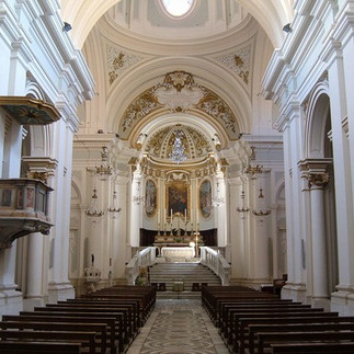 La parte interna è a croce latina con presbiterio sopraelevato, con navata unica coperta da volta a botte e cupola con lanterna; quelle che un tempo erano le navate laterali sono state ridotte a otto cappelle comunicanti. L’altare maggiore è costituito da un sarcofago paleocristiano del III o IV sec., e molte altre sono le opere qui visibili, databili a periodi differenti.